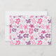 Um cartão de RSVP de Casamento com um padrão floral fofo. Composto de flores rosadas e roxas irregulares, em estilo de entalhe retrô-60. Os corações azuis desbotados, penteiam o fundo num pano de fundo azul pálido. Um quadro branco desenhado no centro com as palavras RSVP, escrito em uma fonte de tendência preta.