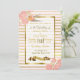 Vintage aves e flores cor-de-rosa e convites de casamento dourados adicionando suas informações de casamento na área personalizada.
