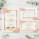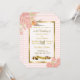 Vintage aves e flores cor-de-rosa e convites de casamento dourados adicionando suas informações de casamento na área personalizada.