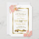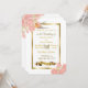 Vintage aves e flores cor-de-rosa e convites de casamento dourados adicionando suas informações de casamento na área personalizada.
