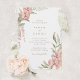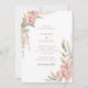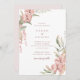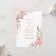 Um belo convite de casamento em aquarela com folhas verdes com flores rosa-mauve. Personalize o texto com o editor online. Altere a cor no verso para qualquer cor que você preferir.
