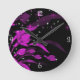 Flores Rosa Neon, Relógio de Parede Preto