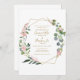 Esta forma geométrica dourada é enfeitada com flores verdes e cor-de-rosa macio. A design de aquarela é romântica e perfeita para casamentos, chás de panela, chás de fraldas e afins.