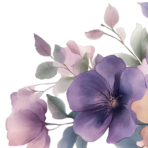 Um trabalho de arte de aquarela detalhado com tons pastéis de flores roxas e rosa com folhas verdes. As cores e o texto podem ser personalizados. Se você precisar de personalização ou itens correspondentes, entre em contato comigo.