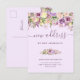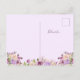 Este novo e encantador cartão postal de anúncio apresenta um buquê floral de cor d'água roxa com muitas folhas verdes em um fundo de lavanda macia. Escrita manual roxa e texto moderno se combinam de uma forma simples e elegante para que a família e os amigos saibam que você se mudou!