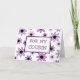 Cartão de convite para garotas florescentes para seu primo com ilustrações florais divertidas em roxo, rosa e branco.
