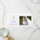 cartão com fotos religioso com fundo floral roxo leve e ornamentado roxo e cruz dourada e estrutura roxa escalpada. Este cartão pode ser personalizado para confirmações, batismos, batizações, sindicatos ou outras ocasiões cristãs.