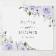 Adicione um toque pessoal à sua celebração de casamento com estes itens de na moda e festa memoráveis! Design apresenta flores de aquarela roxas e verde sobre fundo branco.