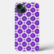Um padrão contínuo com flores roxas vibrantes e ousadas e desenhos intrincados de folhas. A disposição simétrica e as cores marcantes tornam-no perfeito para fins decorativos, têxteis ou fundos.