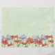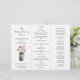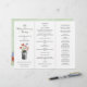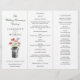 Programa de casamentos triplo com buquê de aquarela rústica de flores escolhidas à mão num balde de leite. No verso do programa, há um fundo verde de lavagem a aquarela de verão com um campo de flores, florais como papoilas, flores de milho e grama. Observe que a alteração do tipo de papel pode dificultar o dobramento do programa.