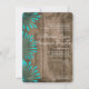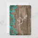 | Vintage Rustic Barn Wood com Teal Flowers Casando Convites com Cantos Arredondados. Um design de madeira marrom aflita com uma flor de teal na borda. Estes são excelentes de casamento para um casamento de um país, casamento de celeiro ou casamento de temas vintage. Você também pode pedir este convite com cantos quadrados regulares, se quiser.