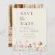 Este convite elegante e boêmio para salvar a data, com design minimalista de flores silvestres, é a maneira perfeita de anunciar seus próximos núpcias de forma elegante e acessível. O convite apresenta um design simples com uma flor silvestre e uma fonte moderna. O convite é personalizável com seu próprio texto e detalhes, tornando-o a maneira perfeita de personalizar sua data de salvamento.