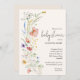Os convites para chuveiros de bebês com na moda neutro em termos de gênero apresentam elegantes flores silvestres de aquarela e seus detalhes em letras quicas em um fundo de marfim pálido. CORRESPONDENTE a itens na nossa coleção.
