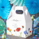 Complete sua celebração de casamento com nossas Caixas de Presente Gable de Campo de Flores Selvagens da Primavera. Essas caixas encantadoras apresentam uma variedade deliciosa de flores silvestres em aquarela em tons vibrantes de amarelo, azul e laranja-avermelhado. As ilustrações florais intrincadas evocam a beleza de um campo de flores na primavera, adicionando um toque caprichoso e elegante aos seus presentes. Perfeitas para guardar pequenos presentes ou guloseimas, essas caixas de presente personalizáveis farão uma adorável adição à decoração do seu casamento, deixando uma impressão duradoura nos seus convidados.