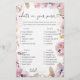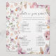 Apresentando o "O que há no seu jogo de bolsa". Nós cuidadosamente curamos esta atividade deliciosa, feita sob medida para esta ocasião especial. Este jogo acrescenta um elemento de diversão e entusiasmo ao seu evento, melhorando a experiência geral. O coração deste jogo se centra nas flores silvestres do estilo aquarela, que elegantemente misturam tonalidades de lavanda, pêssego, creme, e muito mais, complementadas por um conjunto de fontes de na moda. À medida que mergulha nesta atividade, terá a oportunidade de explorar o conteúdo da bolsa e combiná-lo com os itens da lista. É uma maneira criativa de engajar seus hóspedes e adicionar um toque de capricho à sua celebração. Personalize o jogo de acordo com o seu gosto, utilizando um ambiente exclusivo que irá agradar aos seus participantes e criar momentos memoráveis durante esta ocasião significativa.
