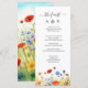 Incorpore o charme da natureza no seu casamento utilizando o nosso Menu Personalizável de Flores Silvestres de Primavera. Este menu encantador apresenta uma representação deslumbrante de um prado primaveril adornado com uma vibrante variedade de flores silvestres. A ilustração em aquarela captura lindamente a essência da beleza da natureza, fornecendo um cenário pitoresco para os detalhes culinários. A paleta de cores dominante inclui flores amarelas deslumbrantes que irradiam calor e alegria, transitando suavemente para uma cascata de flores laranja-vermelhas e, finalmente, delicadas flores azuis que adicionam um toque de serenidade. Para personalizar ainda mais este menu, clique no link "personalizar ainda mais" e utilize nossa ferramenta de design para ajustar este modelo de acordo com as suas preferências.