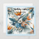 Este cartão mostra um padrão floral tropical vivo que evoca a essência das vibrações havaianas. Apresenta uma borda de azul claro. que pode ser personalizada para qualquer preferência de cor. Mande seus desejos de aniversário e esclareça um dia com este tema botânico.