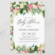 Celebre o seu próximo pacote de alegria com este belamente personalizável convite para chás de fraldas, com um tema tropical vibrante. Com planície aquosa de plumeria, hibisco e outras flores exóticas, esta carta elegante é enquadrada por verde tropical, incluindo folhas de palma e folhas de bananeira. É perfeito para um chá de fraldas de verão, uma festa com tema lúau, ou qualquer celebração inspirada na ilha. Este convite para chás de fraldas tropicais é fácil de personalizar com seus detalhes de evento. Quer você esteja hospedando uma festa de jardim somente para meninas ou um bash de jardim co-ed, este convite dá o tom perfeito.