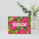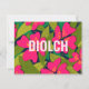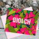 Design de cartão de obrigado tropical moderno, com lindas flores rosa de Hibiscus e palmeiras. A mensagem diz: Diolch - Welsh para Obrigado, mas isso pode ser facilmente alterado. Isso faria uma nota para enviar para a pessoa patriótica de galês.