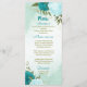 Belo cartão de cardápio de casamento com turquesa e flores azuis-claras e folhas verdes Os detalhes da reluz do ouro são simulados. PARA MAIS PRODUTOS CORRESPONDENTES, clique na coleção acima ou entre em contato comigo