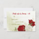 flores vermelhas folhas verdes cartão RSVP