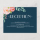 Cartão de recepção de casamento sofisticado e elegante com rosas pintadas em aquarela com fundo azul-marinho. Você pode personalizar a cor do fundo. Selecione um formato de corte ou papel texturizado para um toque extra de luxo. Convite de casamento sofisticado e elegante com rosas pintadas em aquarela com fundo azul-marinho. Você pode personalizar o fundo para a cor de sua escolha. Selecione um formato de corte ou papel texturizado para um toque extra de luxo. Misture e combine elementos desta coleção para um conjunto de convites contínuo e elegante.