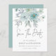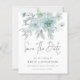 Há duas opções de papel a escolher para esse tamanho (4,5 x 5,6") na faixa de Orçamento. Para este produto, eu recomendaria o semibrilho, que é um estoque de cartão de 110 gsm, semelhante em espessura a um cartão postal. A opção Satin é um papel muito mais fino, 80gsm. O padrão é definido como semirbrilho. POR FAVOR, NOTE que existe UM por folha. Teal White Sea Mist Florals Salva A Data. Uma tipografia informal em preto para a Festa de noivado principal que complementa o resto do texto que você pode facilmente personalizar.