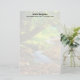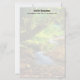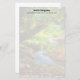 Papel de papelaria com uma floresta verde brilhante com um riacho enrolamento bonito. O castanho deixa cobrir o chão da floresta, proporcionando um bom contraste com a exuberante vegetação destas madeiras mágicas.