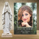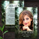 Cartões de agradecimentos funerário ou memorial com sua foto personalizada, enquadrada por uma imagem de floresta.