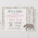 Convite do chá de fraldas da menina do urso com fundo rústico da floresta. Para uma personalização mais adicional, clique por favor "personalizam-no" botão e usam-nos nossa ferramenta de design para alterar este modelo.