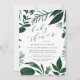 Nosso convite para o chá de fraldas da Floresta Selvagem apresenta os detalhes do seu chá de fraldas em chic off-black, enquadrado pela folhagem de aquarela pintada em tons exuberantes de verde caçador. Uma nova abordagem da tendência botânica com folhas pintadas e sotaques elegantes de caligrafia que é perfeita para chás de fraldas neutros de inverno ou primavera.