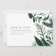Nossa Floresta Selvagem salva o cartão de data... contém os principais detalhes do seu casamento (nomes, data do casamento, local e site), acentuados pela folhagem de cor d'água do inverno em verde rico caçador. Um moderno e elegante salvando a design de data para primavera ou casamentos no inverno que é um minimalista chique encarando a tendência botânica.