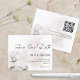 Um valor para o alternativo do ORÇAMENTO em tamanho menor de 4,5 x 5,6" de semirbrilho de 110 lbs, que é de espessura semelhante a um cartão postal (no entanto, não é adequado para uso como cartão postal). POR FAVOR, NOTE que existe UM por folha. Os Florais Brancos do Orçamento, Casando Código QR Salvem Nossa Data. Um design floral minimalista em branco suave e cinza até ao canto inferior esquerdo e uma lavagem de cor d'água pálida em azul sutil e cor-de-rosa no fundo. Salvar nossa data está em um script moderno e personalizar facilmente o resto do texto. Adicione seu código QR ao seu site de casamento no verso substituindo o código QR na amostra. Ou exclua isso se não for necessário. Você pode criar códigos QR gratuitamente on-line. Basta pesquisar "Criador de código QR" e muitas opções surgem para criar gratuitamente.