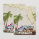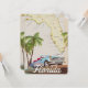 Belo mapa ilustrado do estado da Flórida e das ilhas da região em um belo estilo de vintage com um carro retrô dos anos 50.