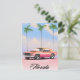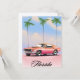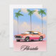 Poster de viagens Pink Sunset da Flórida com um carro muscular retrô-americano contra um pôr do sol da noite.