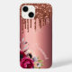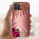 Derrapagem de brilho de bronze em falso, pingar de tinta em um fundo falso de metal de cobre. Flores cor de borgonha e rosa, flores. Personalize e adicione seu nome. O nome em rosa gold é escrito com um moderno e moderno roteiro de estilo escrito à mão.