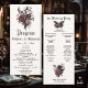 Mergulhe seu casamento em uma tapeçaria de beleza gótica - Uma ravena preta senta sobre uma buquê de rosa de madeira e rosas pretas de carvão na frente - Uma das costas com mais detalhes, coordenando flores de madeira e carvão são melhoradas com morcegos e asas de morcego. Embelado com a velha caligrafia inglesa e gótica. Use nossa modelo fácil de personalizar para personalizar com seus detalhes. . Design de casamento Criado por ©WhimsicalArtwork™ Esta é parte de uma suíte de artigos de casamento completa
