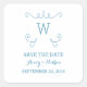 Monograma branco moderno e simples Guarde os adesivos datados com um filme giratório elegante a azul. Fácil de personalizar, basta adicionar os detalhes iniciais e do casamento nos campos de texto fornecidos. Clique em "Personalizar" para encontrar mais opções de personalização.