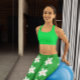 WHITE FLOWER WITH GREEN BACKGROUND YOGA PANTS