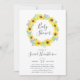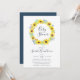 Os convites para brunch de chá de fraldas chic do país apresentam uma coroa de girassóis de cor d'água, folhas verdes e minúsculos botões azuis marinhos, cercando o "chá de fraldas" em letra chic manuscrita. Personalize com os detalhes do seu chá de fraldas abaixo.