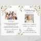 Programa de Fotografia Funeral Memorial da Ordem de Serviço. Apresenta flores e folhas brancas de marfim de cor aquosa, uma foto na frente e uma foto da família no verso, sobre fundo branco. Use a ferramenta Personalizar para adicionar suas informações e adicionar facilmente suas fotos. Para encontrar itens, por favor, visite a minha Comemoração da Compaixão da Vida Obrigado Coleção.