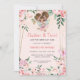 Convite de aniversário de fada personalizável, com uma fada bonita com cachos e uma bonito borda de flores, em tons de rosa-pincel, cor-de-rosa-rosa poeirento, com borda geométrica dourada e borboletas.