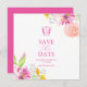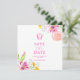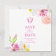 Anuncie sua noivado com esse casamento floral quadrado, exceto os convites para data. Eles apresentam uma mistura de tipografia clássica e de script em rosa sobre um fundo branco nítido. Um fardo de quadros únicos de cor d'água de arte floral você detalha em tons de pinks, pêssego, laranja e lilac. Use os campos modelo para adicionar suas informações personalizadas. Um design de classe e tendências para casamentos e anúncios de noivados. Solicite placas impressas ou faça o download digital salve os convites de data. Para ver a suíte de papelaria de casamento correspondente, visite Do Tell A Belle no Zazzle Original watercolor art de Victoria Grigaliunas do Do Tell A Belle.