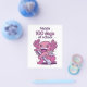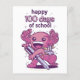 Design bonito com um axolotl vestindo uma mochila e segurando uma grande caneta com a citação "Feliz 100 dias de escola". Feliz 100º dia de escola ou jardim de infância.