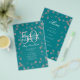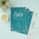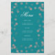 Design de "Programa de Festa de aniversário" elegante com Glitter Confetti em Prata e Teal com texto personalizado.