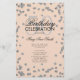 Design de "Programa de Festa de aniversário" elegante com Confetti Glitter em Silver e Blush com texto personalizado.