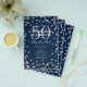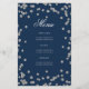 Design de "Programa de Festa de aniversário" elegante com Confetti Glitter em Prata e Marinho com texto personalizado.