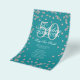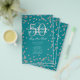 Design de "Programa de Festa de aniversário" elegante com Glitter Confetti em Prata e Teal com texto personalizado.