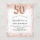 Por favor, note que este convite está no papel de folheto e é muito fino. Os envelopes não estão incluídos. Para convites mais espessos (mesmo design) visite nossa loja. Para um elegante aniversário de 50 anos. Um fundo branco. Decorado com rosa dourado, cintilação falsa rosa, faíscas. Personalize e adicione um nome e detalhes da festa. O nome é escrito com um script de estilo manuscrito, número 50 com fontes de estilo de balão.