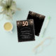 Por favor, note que este convite está no papel de folheto e é muito fino. Os envelopes não estão incluídos. Para convites mais espessos (mesmo design) visite nossa loja. Um convite moderno, na moda e glamouroso para a 50ª festa de aniversário. Um fundo preto decorado com falso brilho. O nome é escrito com um moderno ouro escrito com letras no estilo à mão. Personalize e adicione os detalhes da sua festa. O número 50 é escrito com uma fonte de estilo balão, script.